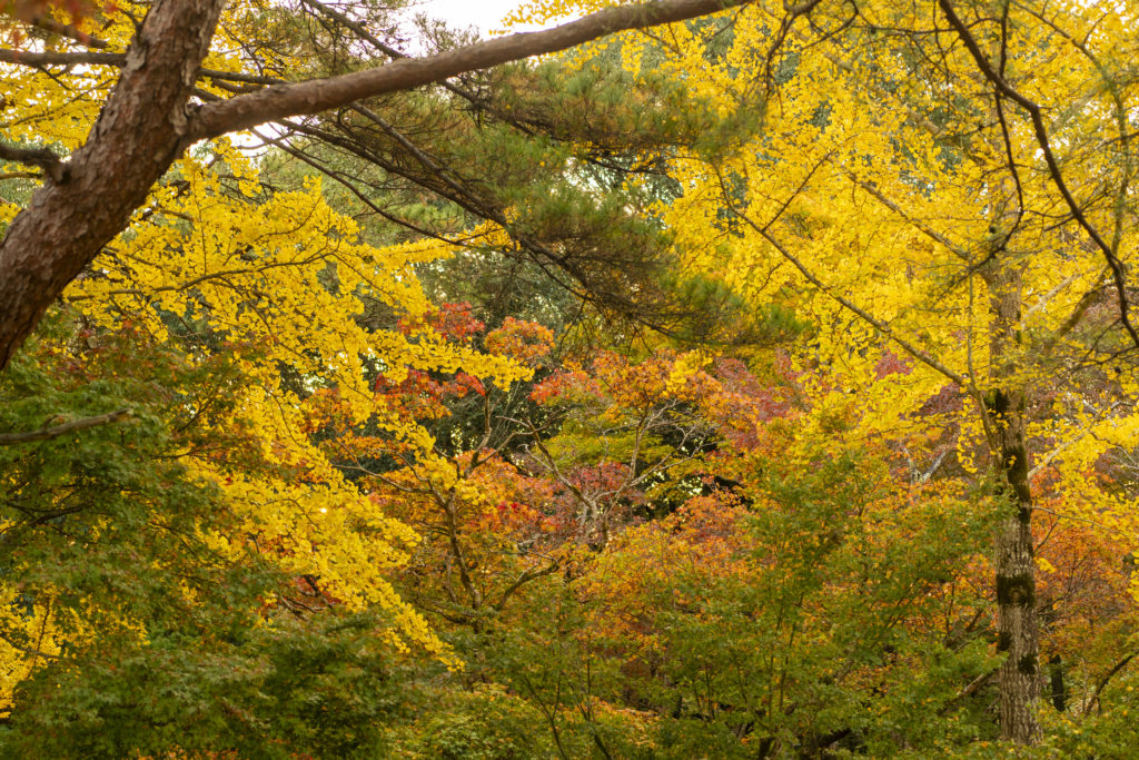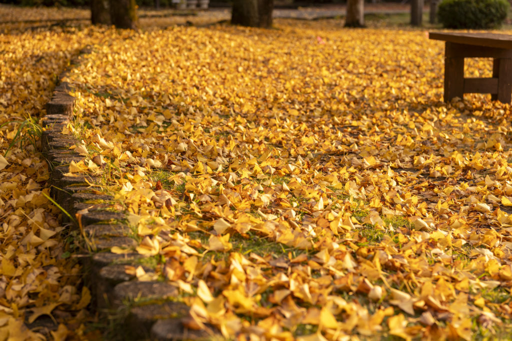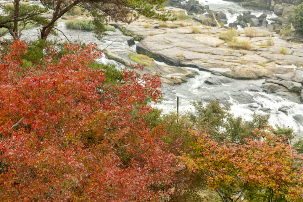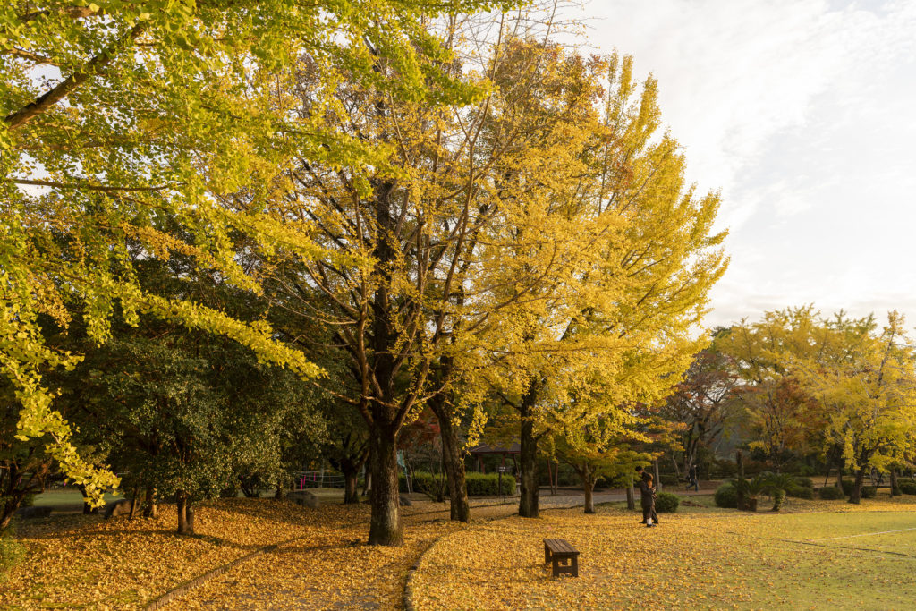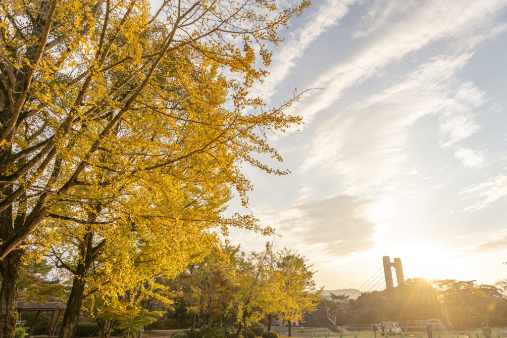 曽木の滝公園では、園内のイチョウが現在見頃を迎えています。